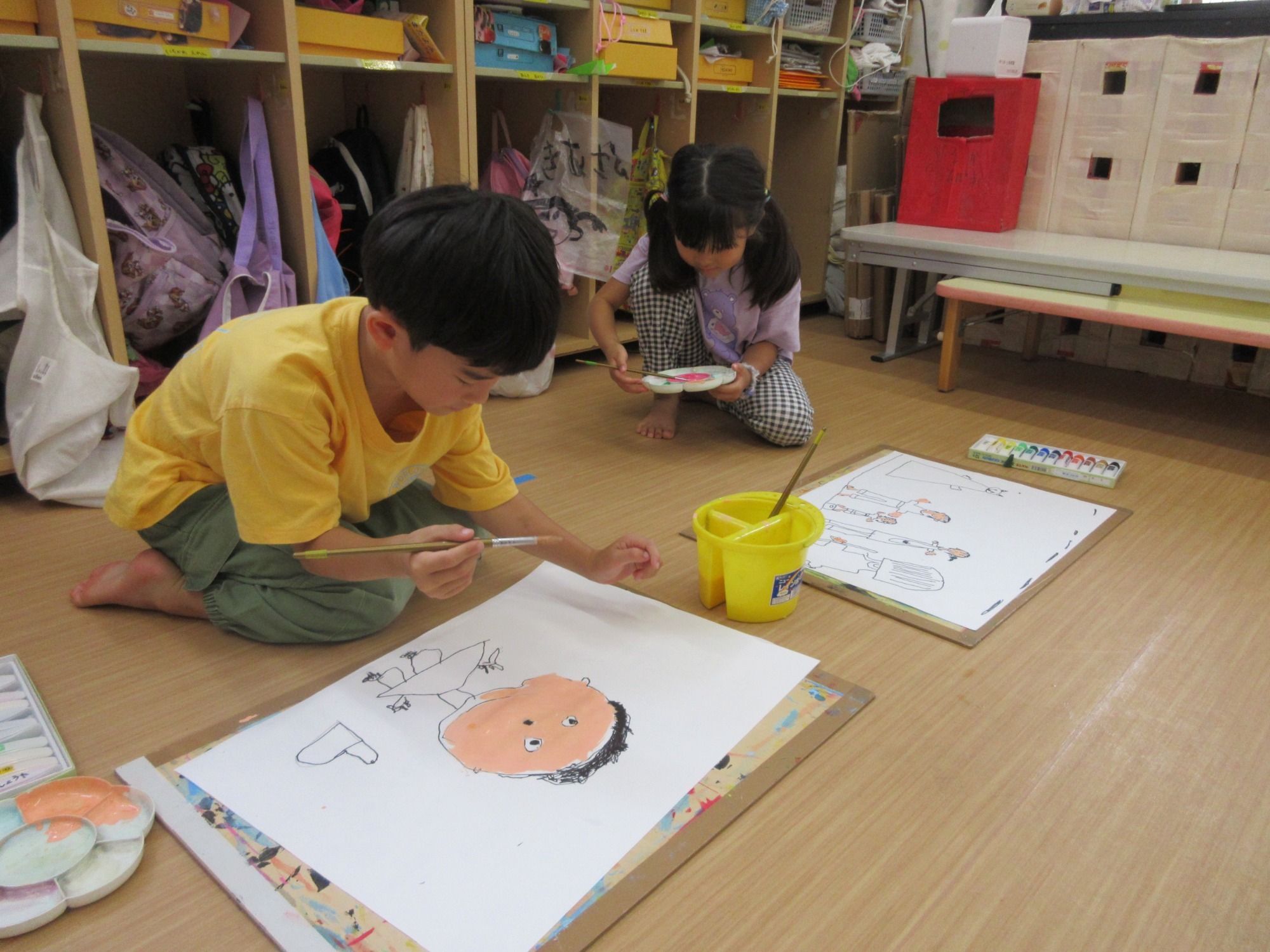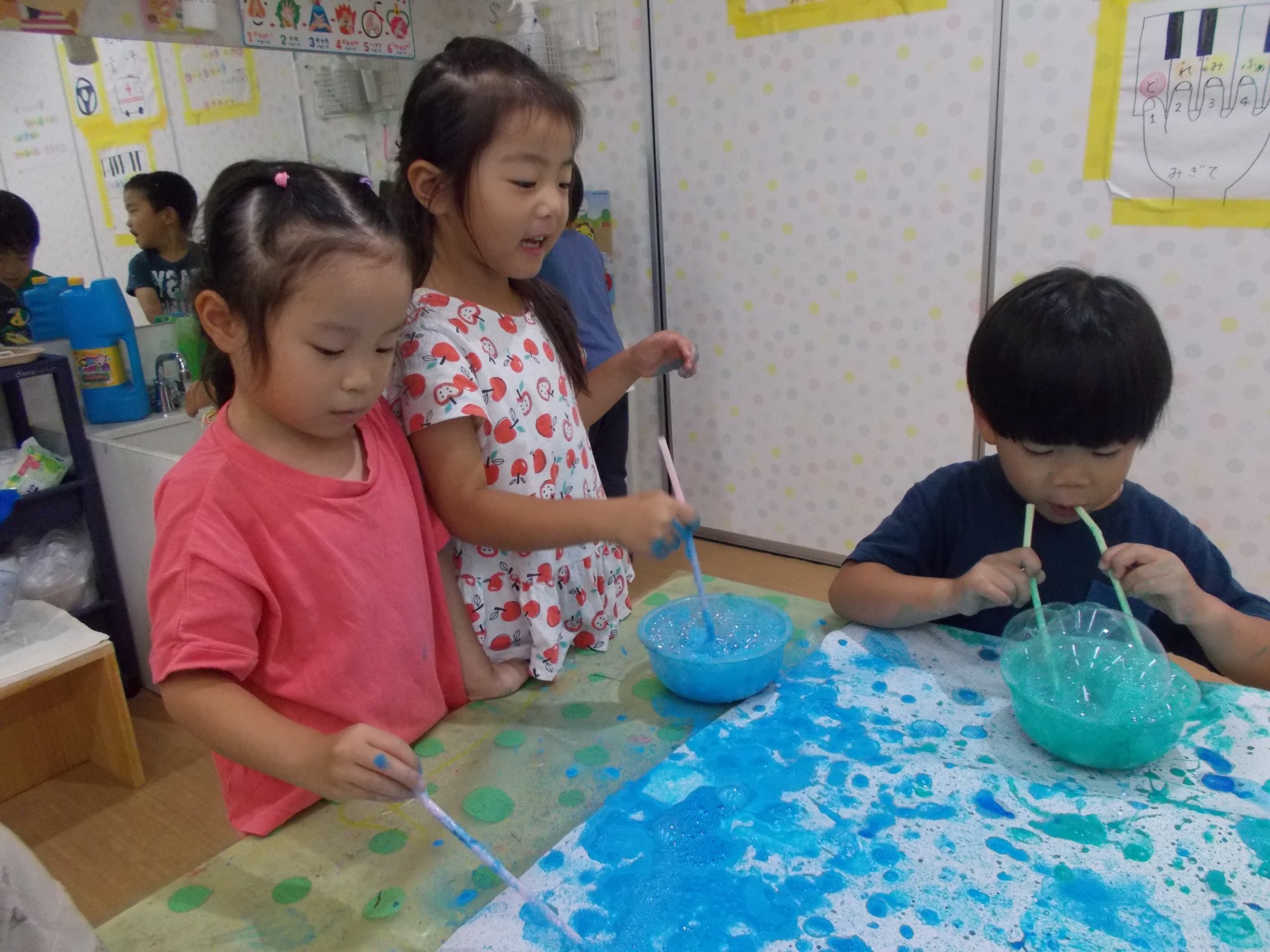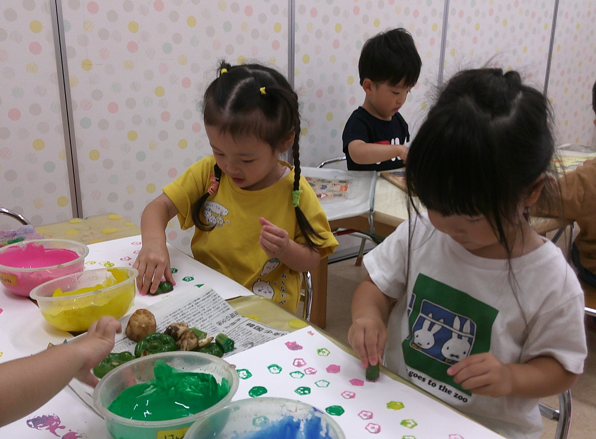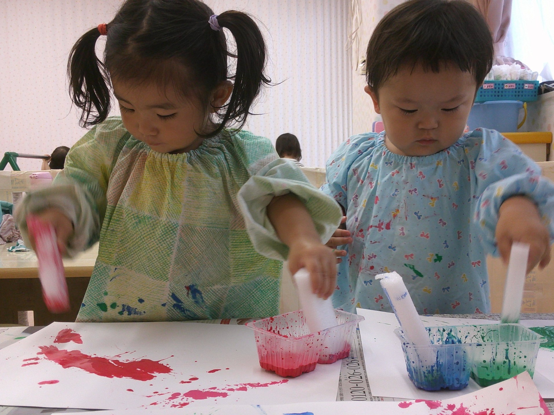 絵具を使った活動も、年齢を経るごとにダイナミックになったり繊細に塗ることが出来るようになったりする子どもたちの姿が見られました。