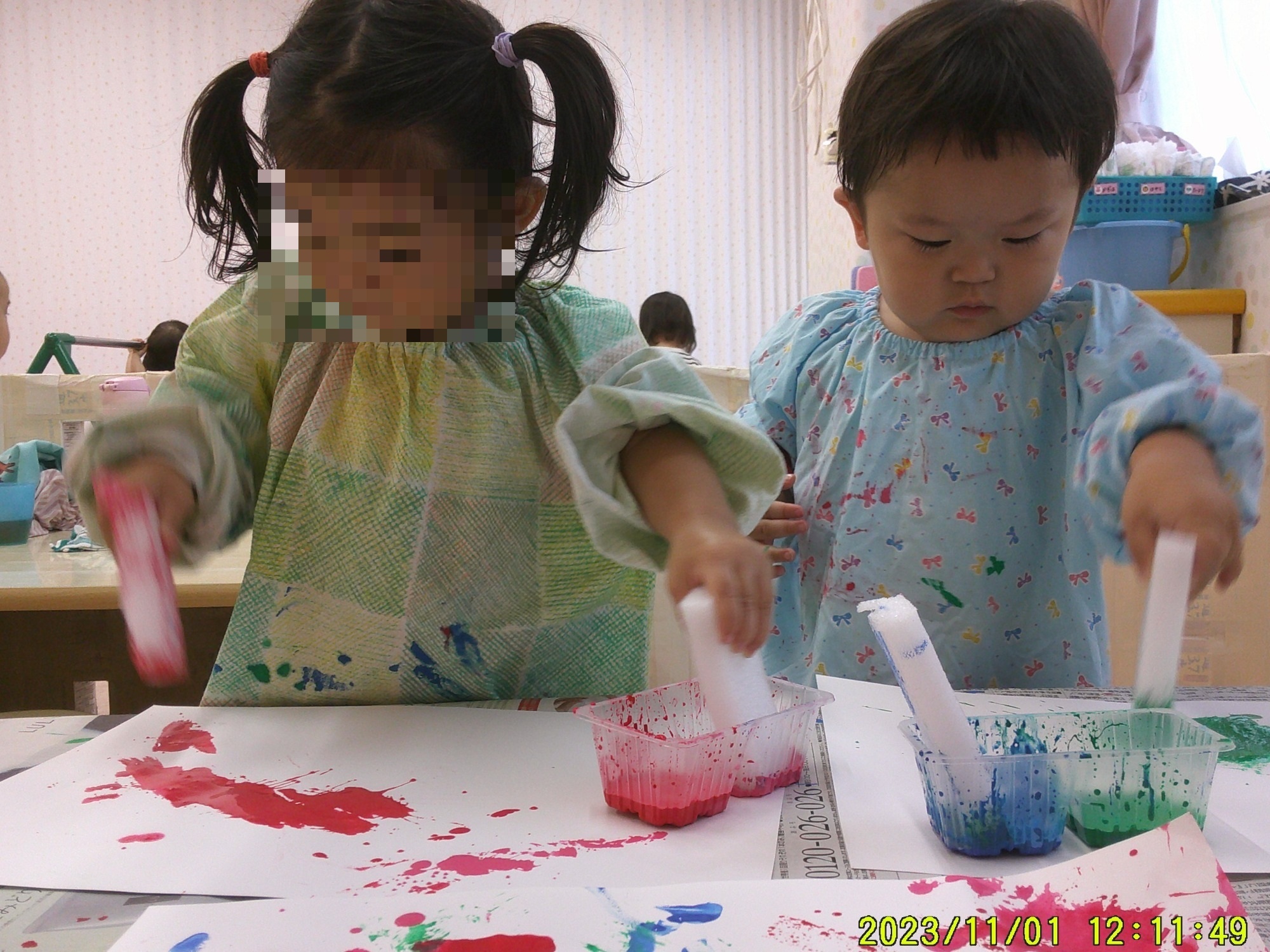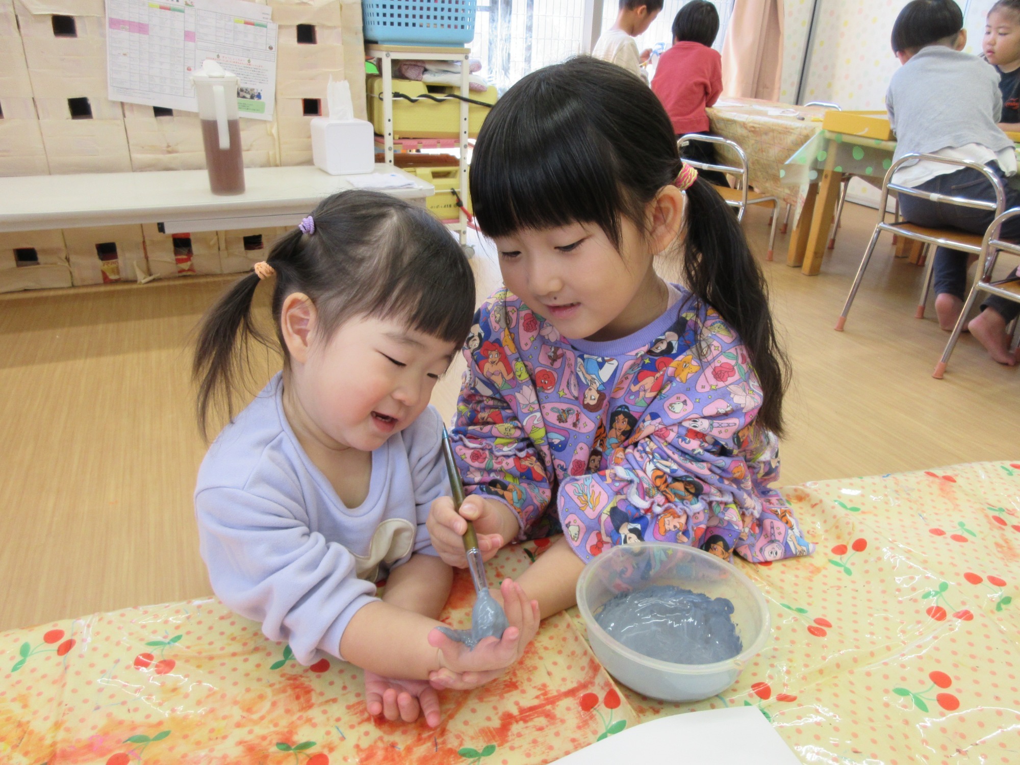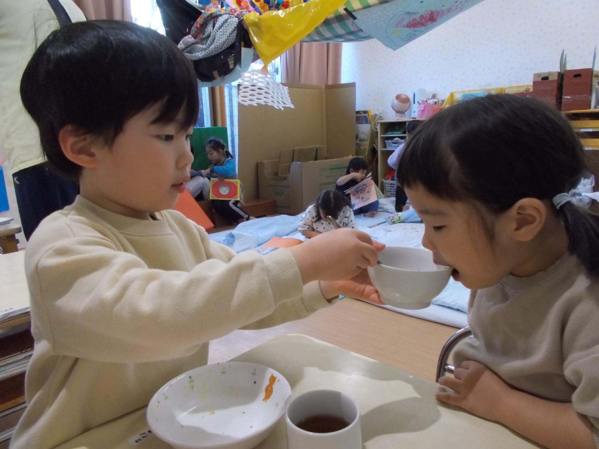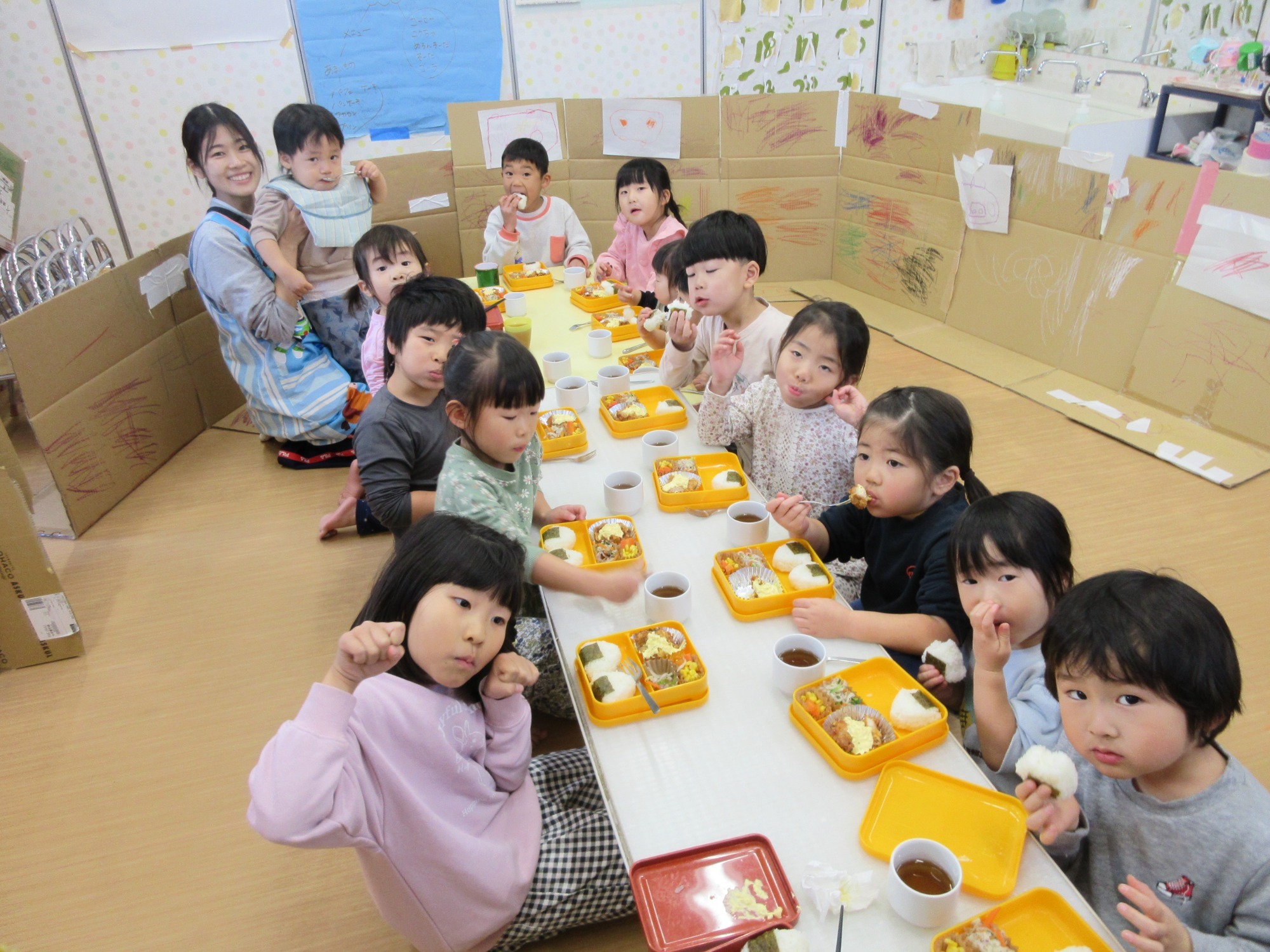 登園から降園までずっとグループで過ごすので、排泄や食事などは年上のお友達がたくさんお手伝いしてくれました!