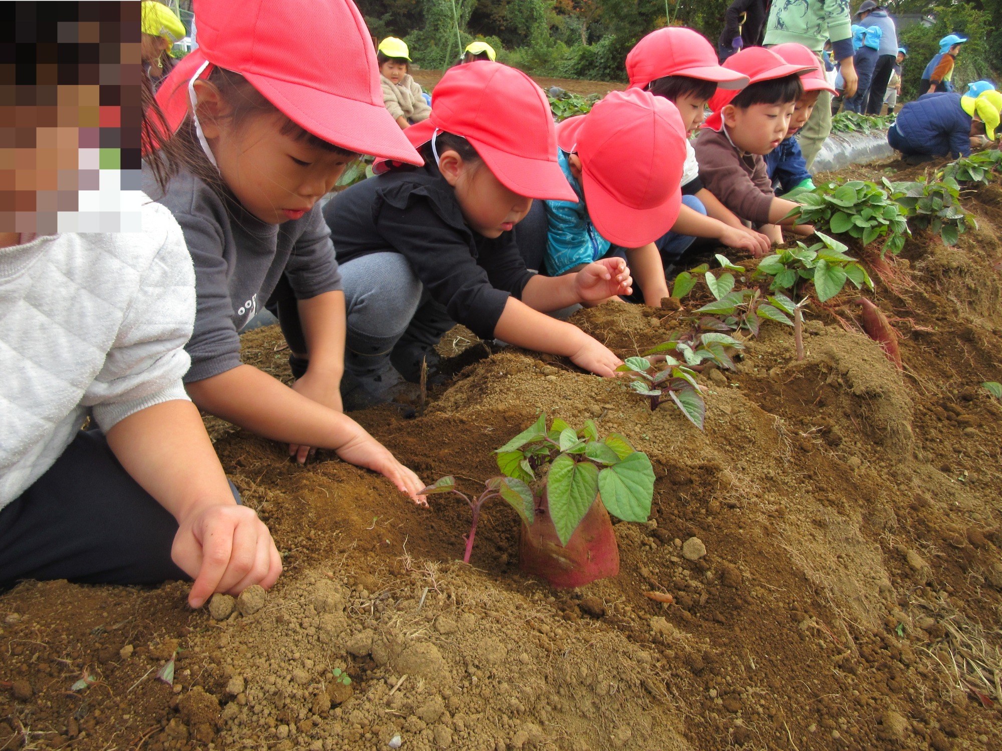 大きい芋が土から顔を出すと、大興奮の子どもたちでした!