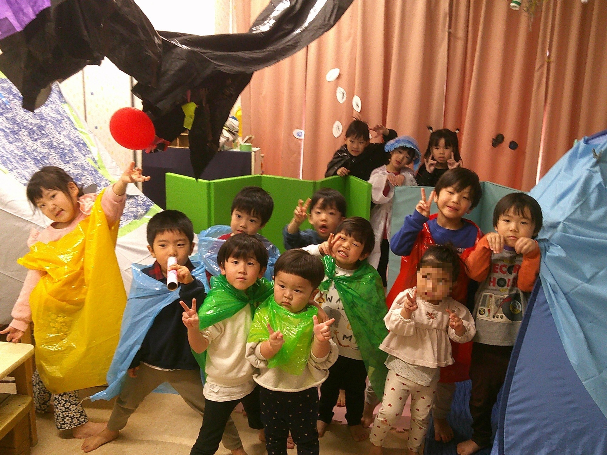 段ボールを使ってお家を作るグループや、お部屋をお化け屋敷にするグループなど、それぞれ充実した1週間となりました。